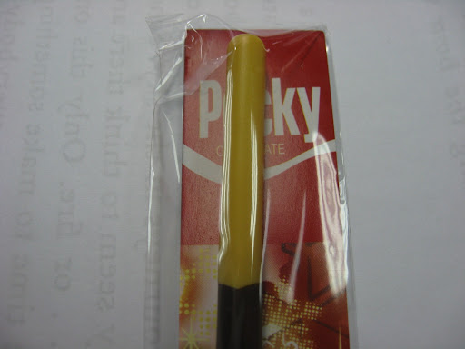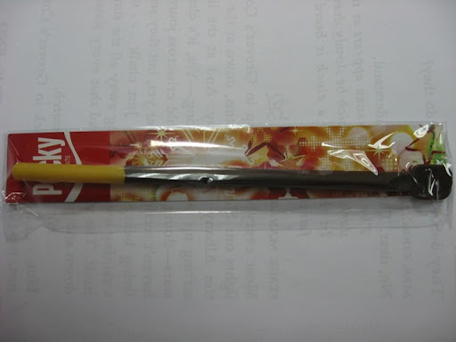 偶然在小七的置物架上發現了這商品,要購買兩盒Pockey巧克力口味才會送黑色的格力高。草莓口味似乎沒有,也就是沒有粉紅色的...。以前我有了Pockey的筷子,自然這項物品也不能放過。